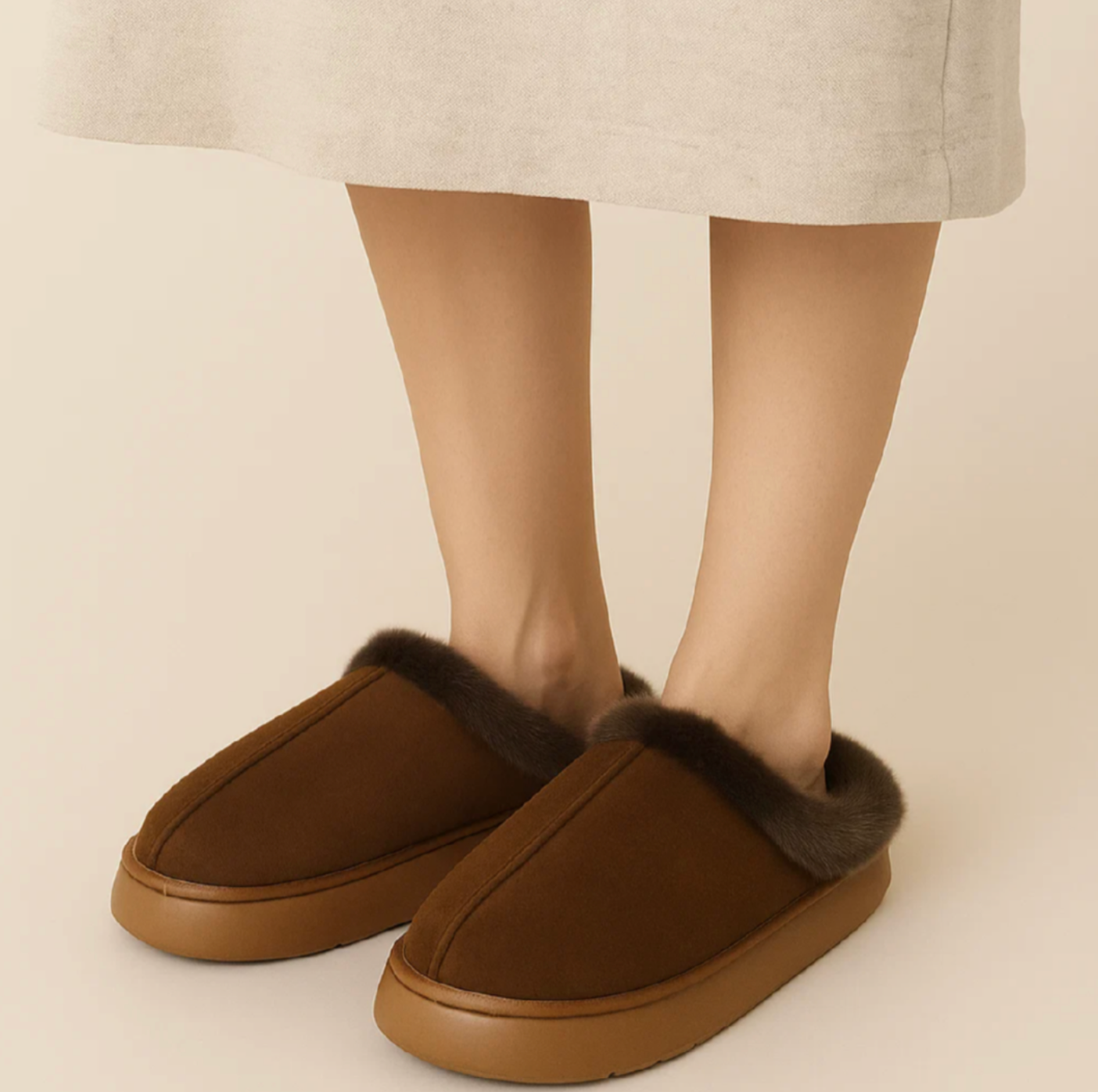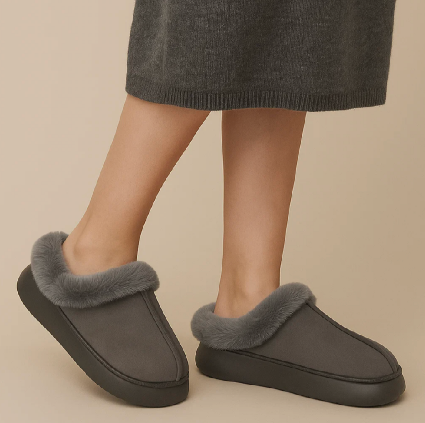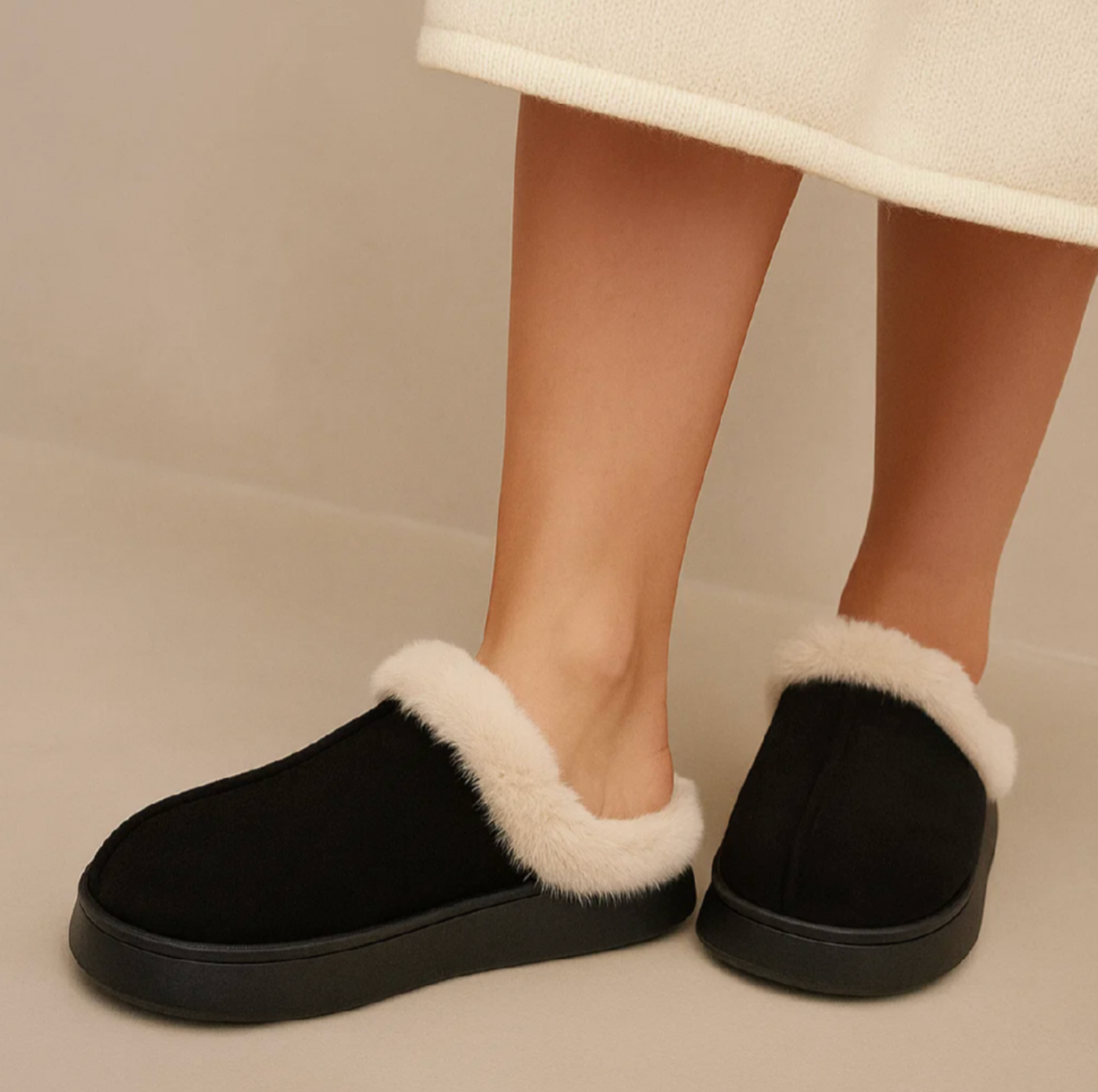 These wonderfully soft shoes combine warmth, style, and convenience in one elegant design. The plush faux fur lining envelops your feet like a warm hug, while the sturdy non-slip sole provides stability on any floor. Perfect for relaxing evenings at home or quiet mornings with a cup of coffee.
